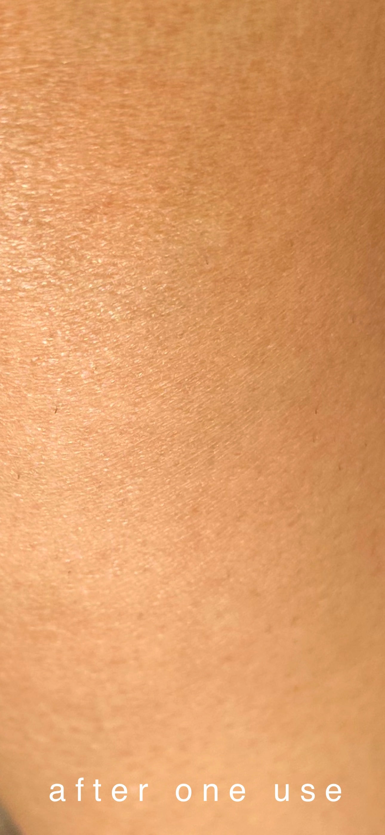 - For an Instant Glow: Use lightly on dry skin (legs, arms, décolletage) for a radiant, illuminated finish before heading out. Can still be used on dry skin!
